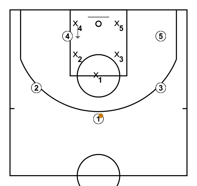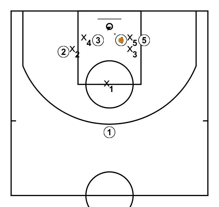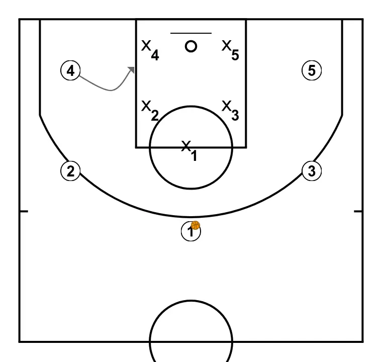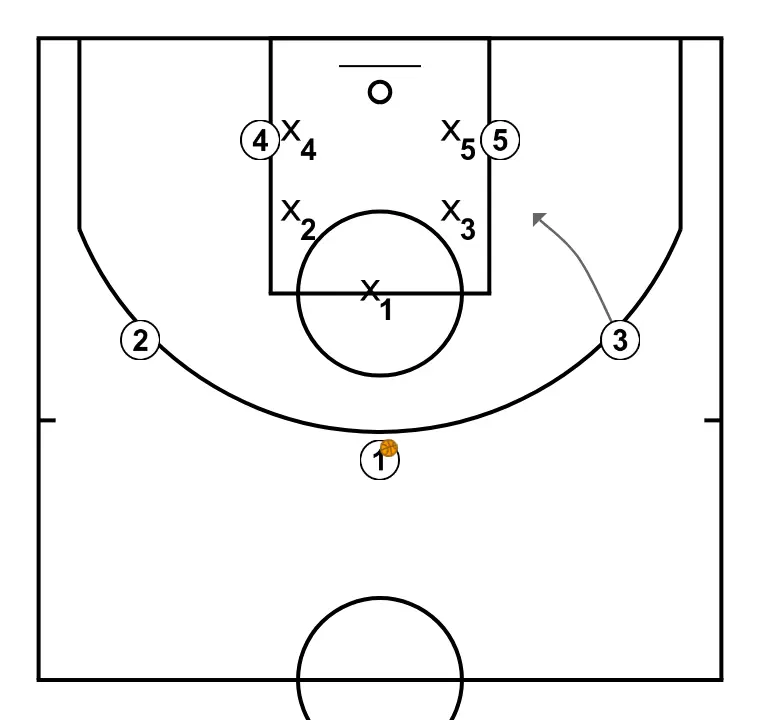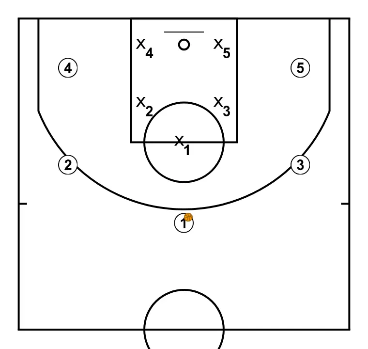 Atac estructurat a mitja pista amb circulació precisa de la pilota Es busca finalitzar amb un tir interior prop del cèrcol.