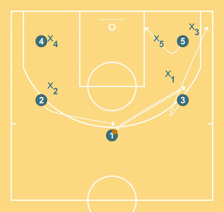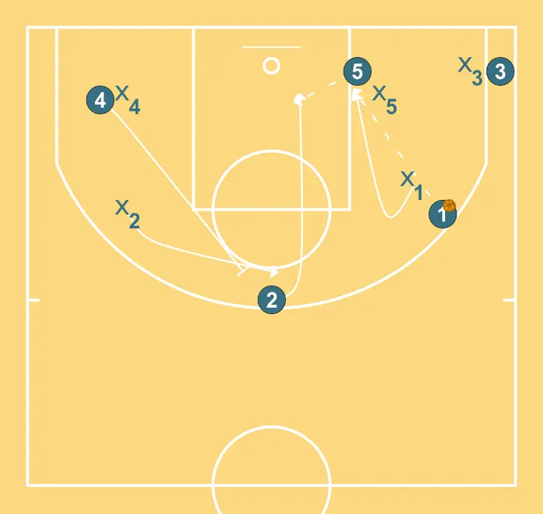 Half-court offensive sequence seeking defensive mismatches.