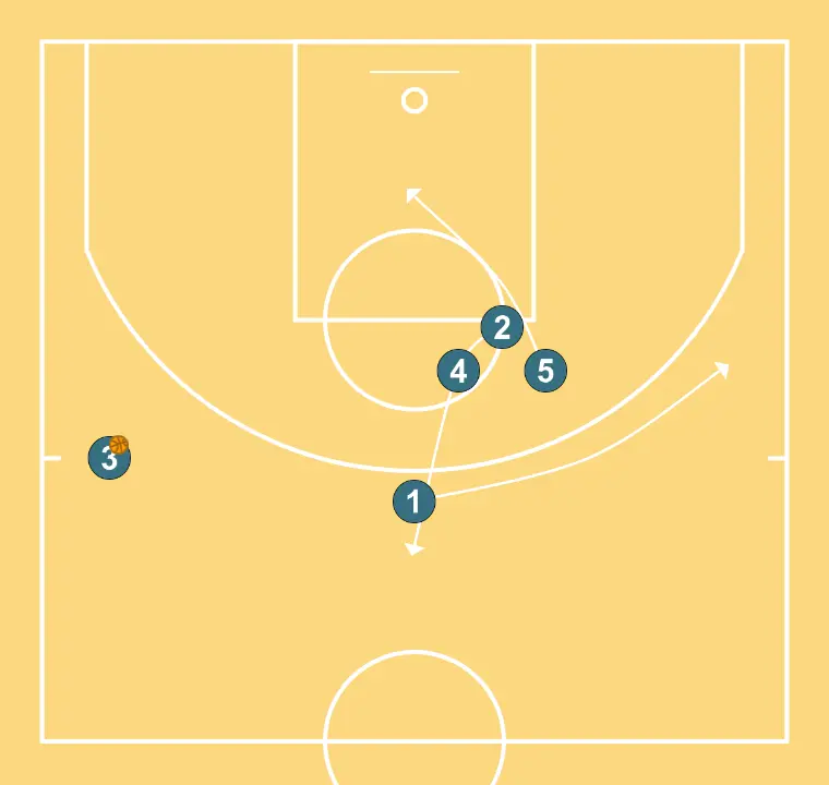 Half-court play generating close-range shooting and cutting options.