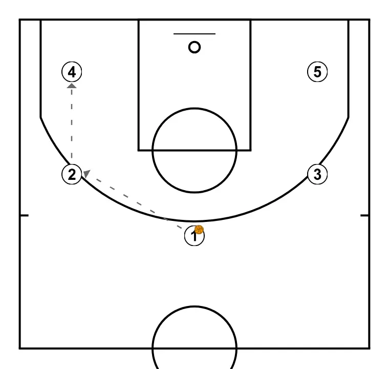 Shooting guard shifts to an optimal spot on the court to maximize offensive efficiency. 1 places themselves strategically to generate passing angles and anticipate defensive moves.
