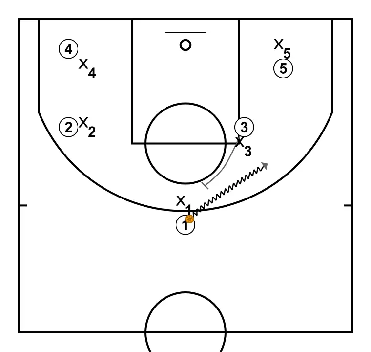 2 plants a screen to improve attack angle and facilitate ball reception. 4 alters position to create defensive mismatches and penetration options.