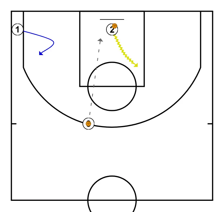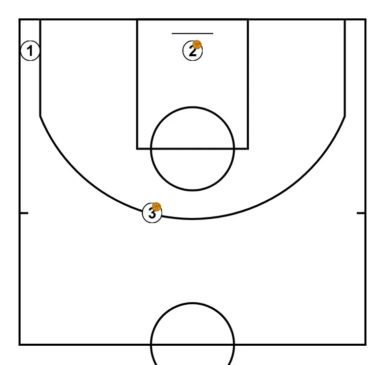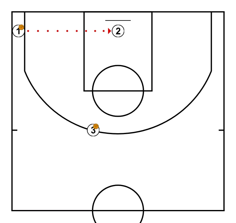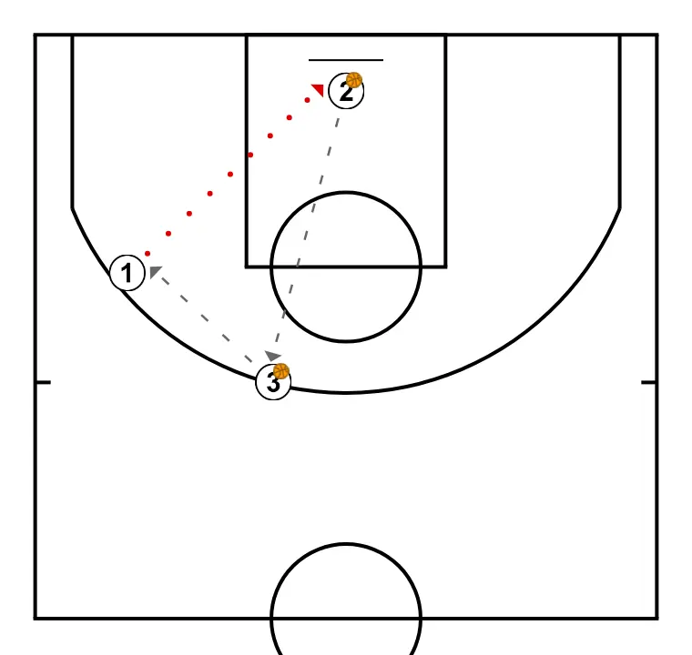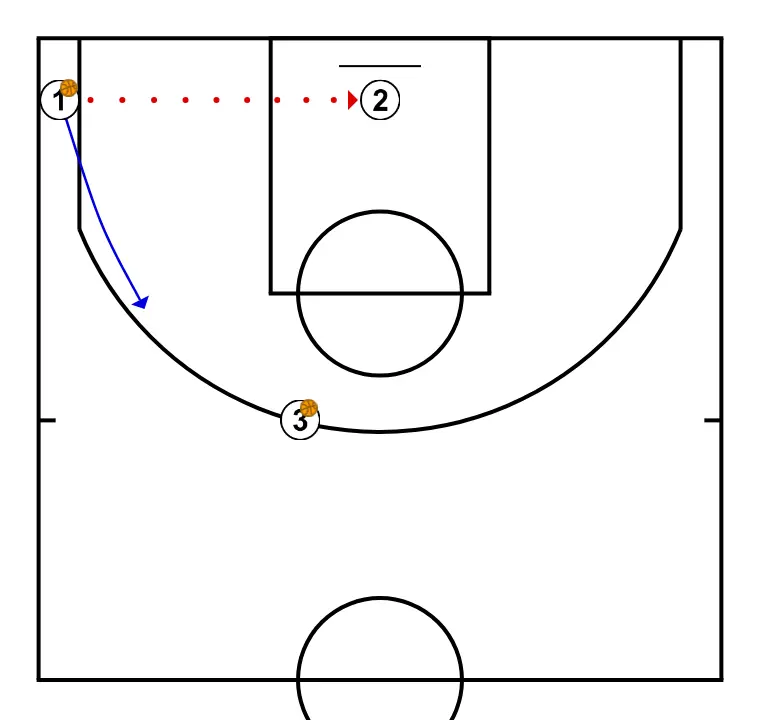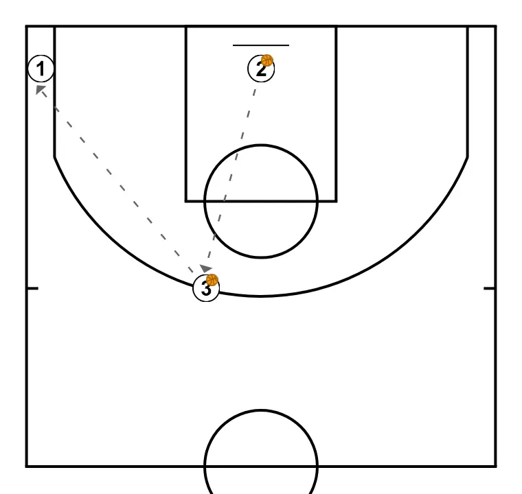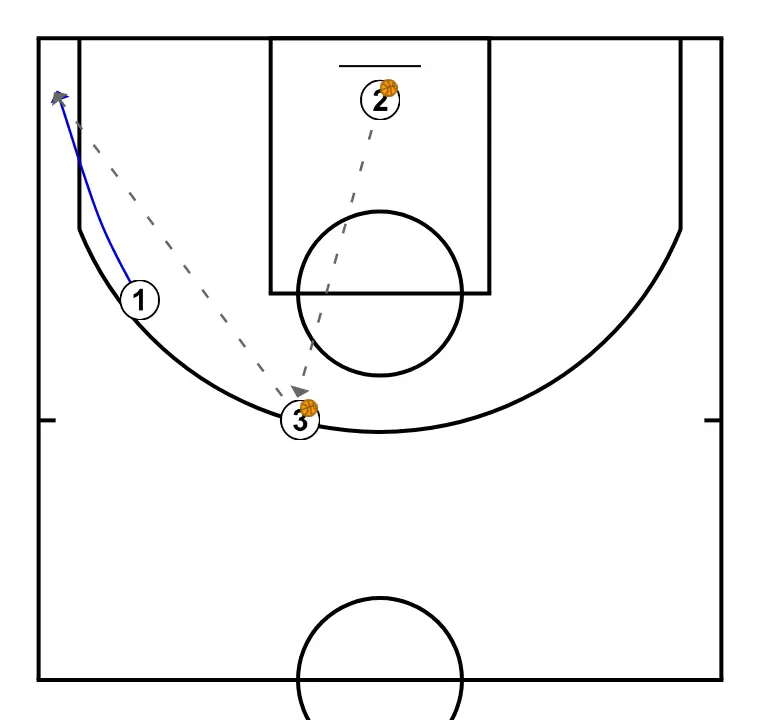 2.- Sube a 45 desde esquina y tira, mientras se pasan el balón los otros dos jugadores.