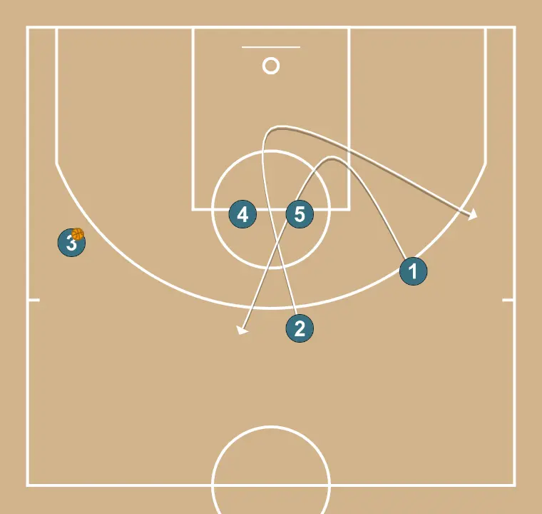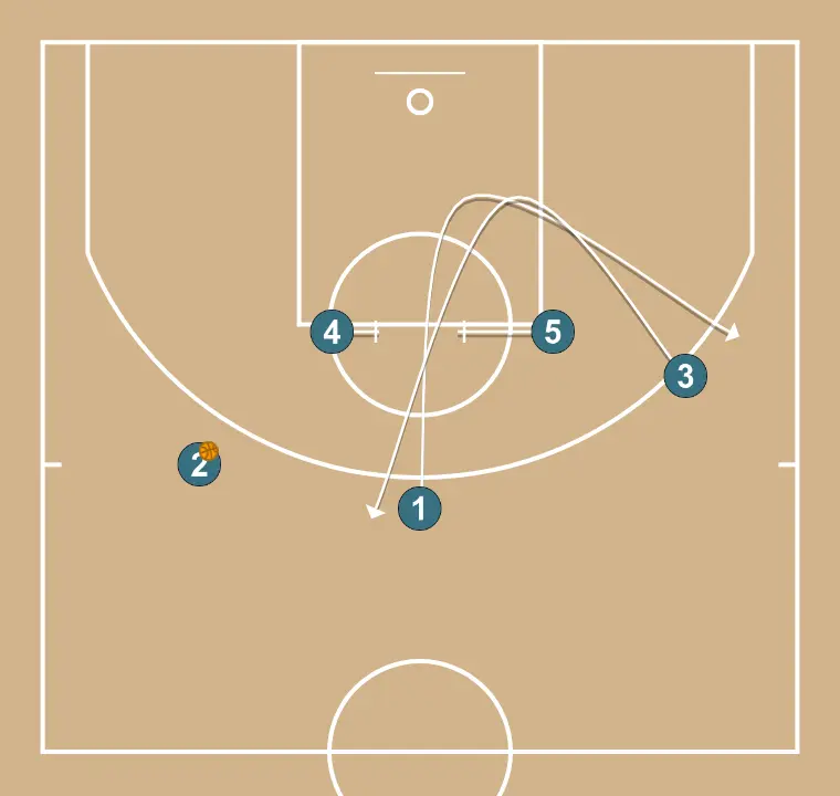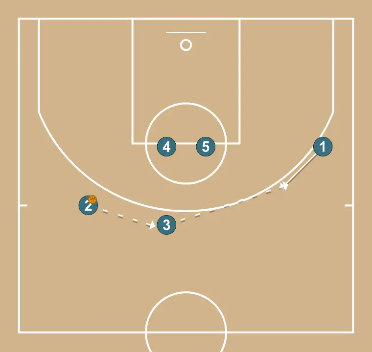 1. Passe et coupe: meneur passe à l'ailier et coupe au panier.