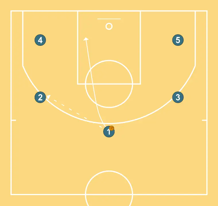Jogo em meia quadra gerando opções de arremesso próximo e cortes.