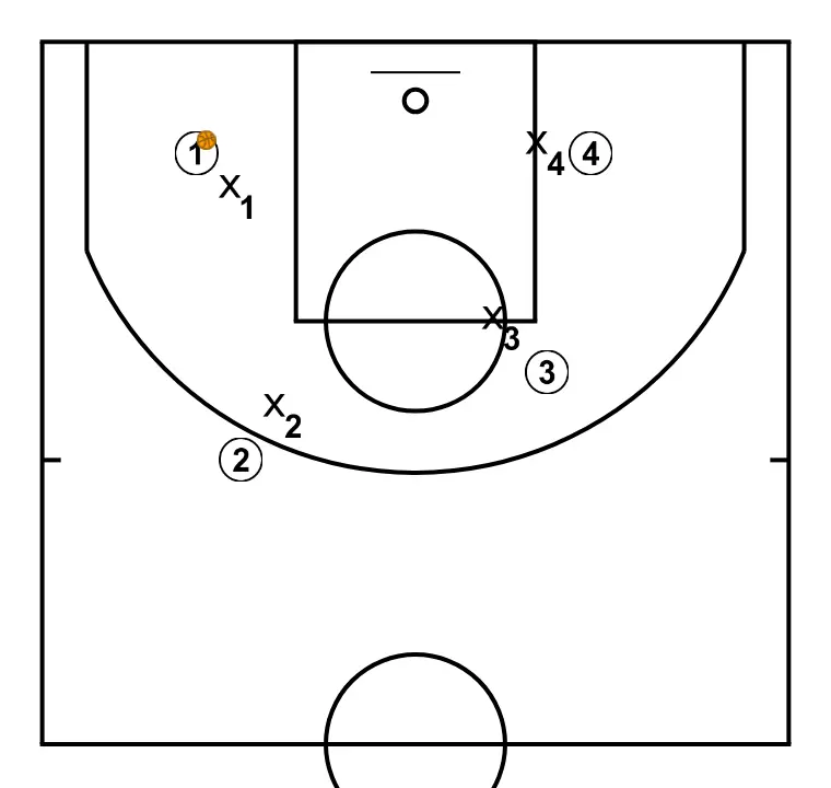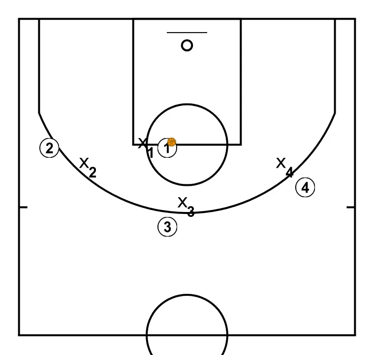 A team of 3, 4 or 5 players with a ball are constantly passing the ball back and forth, without bouncing or dropping the ball. The defending team tries to prevent them from making 10 passes.